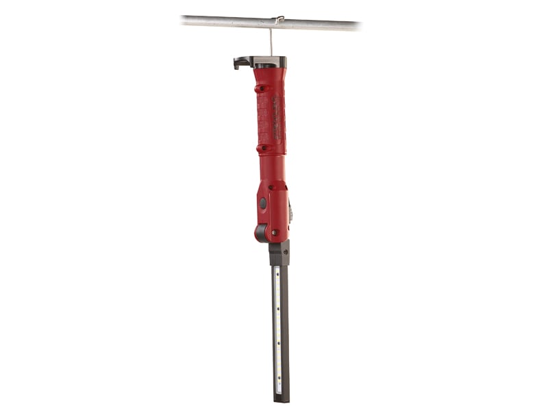 吊り下げて、床に立てて、磁石で付けて角度が調整できるハンドフリー充電式多機能ライトの登場です。非常に明るい白色LEDは明るさを重視する用途に。高演色LEDは色飛びを抑えてそのもの本来の色を忠実に表現します。紫外線LEDは冷媒ガスの漏洩箇所の検知、偽造防止マークの確認、目では見つけにくい汚れやキズの調査等に役立ちます。ライトは専用の充電器に掛けても、USBコードをライトに直差ししても充電することができます。ライトブレードは薄く作られていますので、細く狭い場所へも差し入れることができ、30度毎にノッチがあり、180度展開することが出来ます。足の部分は金属製で、あらゆるブレード展開角度でもライトを安定して直立させることが出来ます。強力なマグネットも内蔵されていますので金属面に固定することも可能です。更に、足にある突起や内蔵フックを利用してロープやワイヤー等に吊り下げて使用することも出来ます。