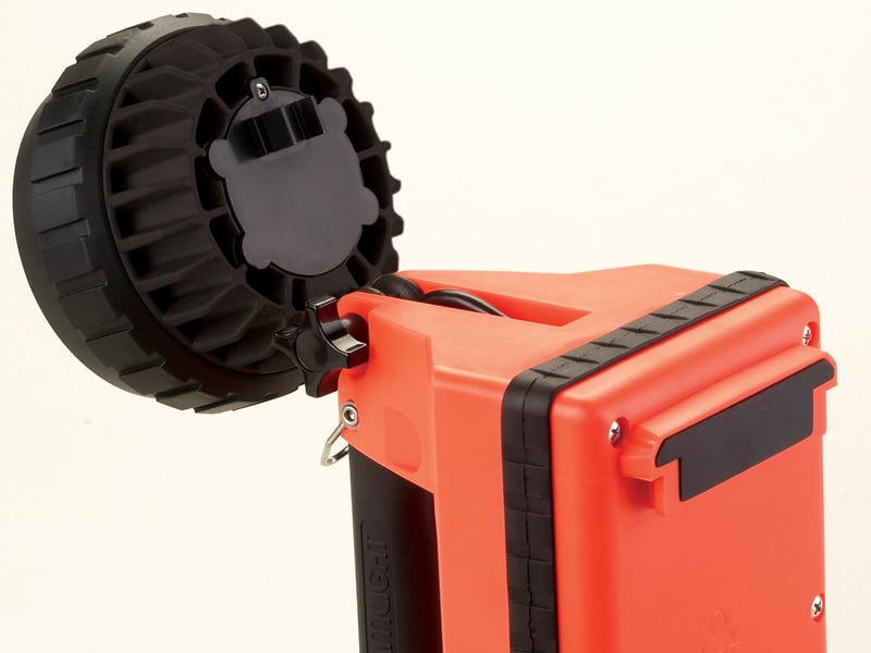 充電式C4スーパーLED散光ポータブル投光器「Eフラッド」。最先端のC4スーパーLEDを6灯装備。615Lumenの超大光量によりエリアをムラなく広範囲に照らします。本体内部のジャンパー設定により明るさを「LOW」に切り替えて点灯時間を長くすることも可能です。首振り自在なヘッドはライトを地面に立てて任意の角度を照らすことも可能。IPX4の耐水性能で雨中の使用も可能です。