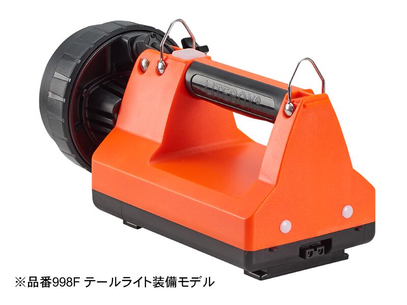 リチウムイオンバッテリーへの変更により大幅にパワーアップ、大幅に軽量化されて「Eスポット」がフルモデルチェンジ。ベーシックな「Eスポット ライトボックス」にテールライトを付加した「Eスポット ファイヤーボックス」。コンセントからの充電中に停電すると自動点灯する「Eスポット ライトボックス非常灯」の3モデルがラインナップされています。上下左右自在に首振りするヘッド部により、あらゆる方向を照らすことができます。明るさは2段階調光で、一回の充電で最長17時間以上の連続点灯が可能です。使い切ったバッテリーの充電時間は約5時間。消防用ライトとして最適化されたワイドなグリップクリアランスと大型スイッチにより、厚手のファイヤーグローブでも操作が容易です。