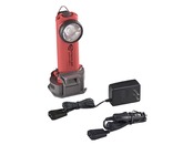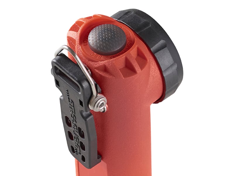 基本的な機能、性能は米国防爆モデルと同等ですが、より静電気抑止効果の高い本体素材を使用し、IEC防爆に対応した専用バッテリーパックを採用しています。使用頻度が低い場合にはアルカリ乾電池モデルを、使用頻度が高い場合には専用バッテリーと充電器をセットした充電式モデルをお薦めいたします。充電式モデルはバッテリーをライトから取り出すことなく、本体を充電器に差し込むだけの簡単充電。充電器はライト本体を片手で着脱出来るように設計されています。90°アングルライトながら薄いヘッド部により消防服や作業服との干渉を最小限に抑え、シャープな光軸により煙中での光の透過性も確保しました。厚手のグローブでも操作しやすいスイッチは電池の残量インジケーターを兼ねています。「IEC防爆モデル」は国際防爆規格IEC60079シリーズの防爆認証を取得しています。使用する電池により「温度レーティング」が異なりますのでご注意ください。