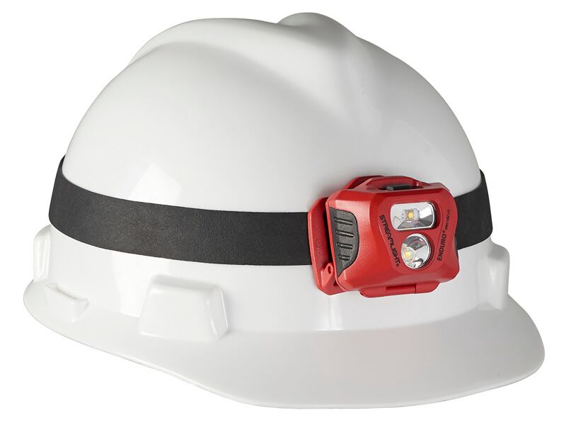 国内防爆検定、IECとATEXの防爆認証を取得した本質安全防爆構造のヘッドランプです。散光用LEDを上部に配置することにより、ヘルメットのつば等による手元の影を軽減しています。それぞれのLEDを独立して点灯することも、両方を同時点灯することも出来ます。必要に応じてヘッドは前方に45°チルトすることができます。単4形アルカリ乾電池を3本使用しても100g以内と軽量で、ヘルメットに装着しても薄型でバランス良く疲れません。