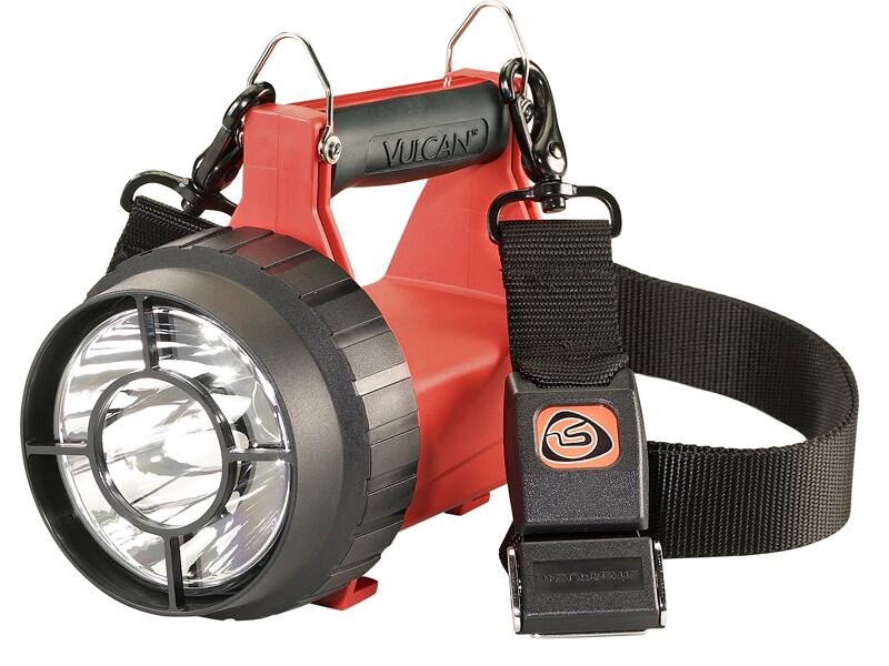 「バルカンLED IEC防爆モデル」は新たなIEC防爆基準をクリアするために、静電気抑制効果のより高い素材を本体に採用すると共に、レンズ面に保護グリッドを設けました。消防隊や各業界から高評価をいただいているシャープな光軸はそのままに、ルーメン数、カンデラ値、光の到達距離をアップグレードいたしました。最新の「C4テクノロジー スーパーLED」と大型反射鏡のコンビネーションは、LEDライトとは思えないほど遠くへ光を届けます。出力を電子制御することにより、大光量と長時間点灯を両立。リチウムイオンバッテリーを採用していますので、ライトのサイズからは想像も出来ないほど軽量。シートベルトタイプのクイックリリースショルダーストラップが標準で付属。厚い消防服にライトをしっかりと巻き付けて火災現場に突入後、ワンプッシュで手持ちライトへと解放することが出来ます。IP66の優れた防水、防塵性能。このライトを投光器として用いるための専用台座と三脚が付属したフルセットもラインナップされています。※充電器を既にお持ちのお客様向け