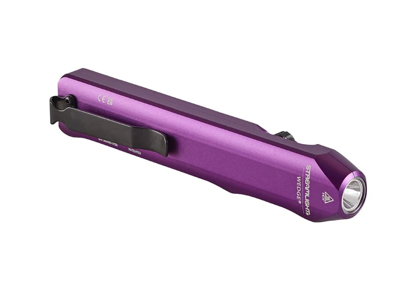 「ウエッジ」には「THRO (スロー) (Temporary Heightened Regulated Output)」と呼ばれる超ハイパワーブーストモードが搭載されています。「THRO」はこのスリムライトからは想像もできない1000ルーメンの光を35秒間だけ発する機能で、電子制御によりLED素子の過熱損傷を防ぎながらライトの最大出力を引き出します。ポケットクリップは取り付け面が変更できますので、利き手を問わずポケットから取り出して、即親指で直感的なスイッチ操作が可能です。スイッチは親指で前に押すように回してON。更に前に回すと「THRO」モードとなり最大35秒間のブースト点灯となります。LEDの温度が下がらぬうちに「THRO」モードを繰り返すと、LED保護のために5秒程度で通常の出力に戻ります。内蔵のリチウムポリマーバッテリーは約3時間で充電完了。スイッチが緑と赤に発光してバッテリー残量と充電状態を表示します。IPX7の完全防水で充電端子カバーも必要ありません。軽量スリムでシンプルなデザインはポケットにすっきりと収まり、充電式でランニングコストのかからないEDC (Everyday Carry) プレミアムライトとして最適です。